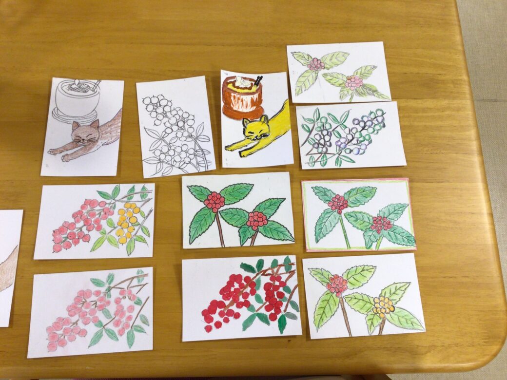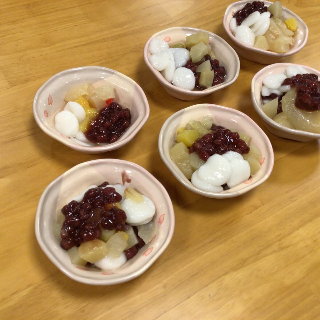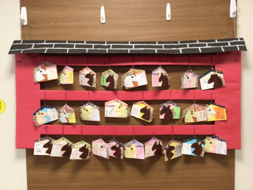 前半の制作物は年初めらしく、手作りの絵馬や壁画、おやつ作りで作った白玉のデザートです。