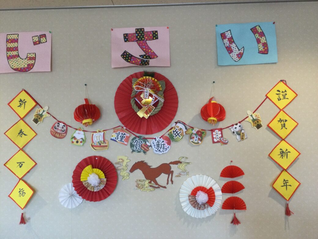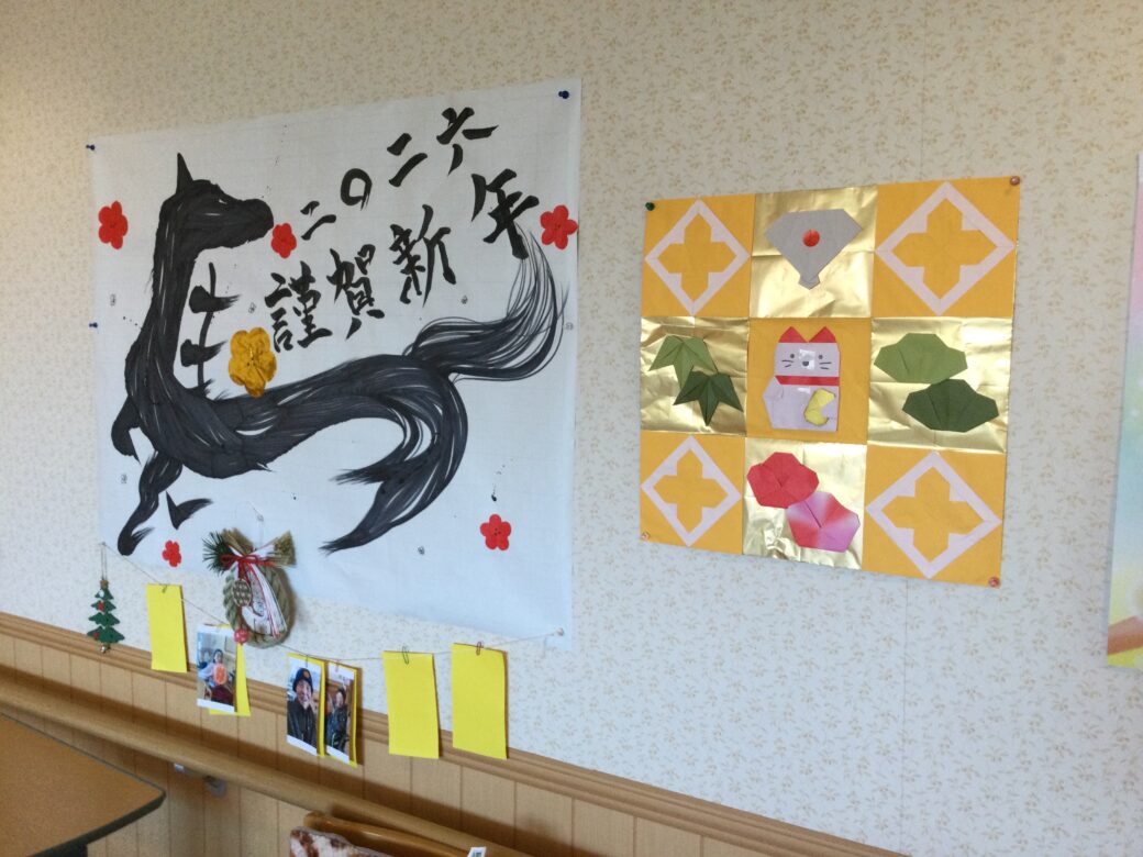 各ユニットの壁もお正月仕様に飾り付け、新年を迎えられた喜びをご利用者様に感じていただける環境を整えました✨