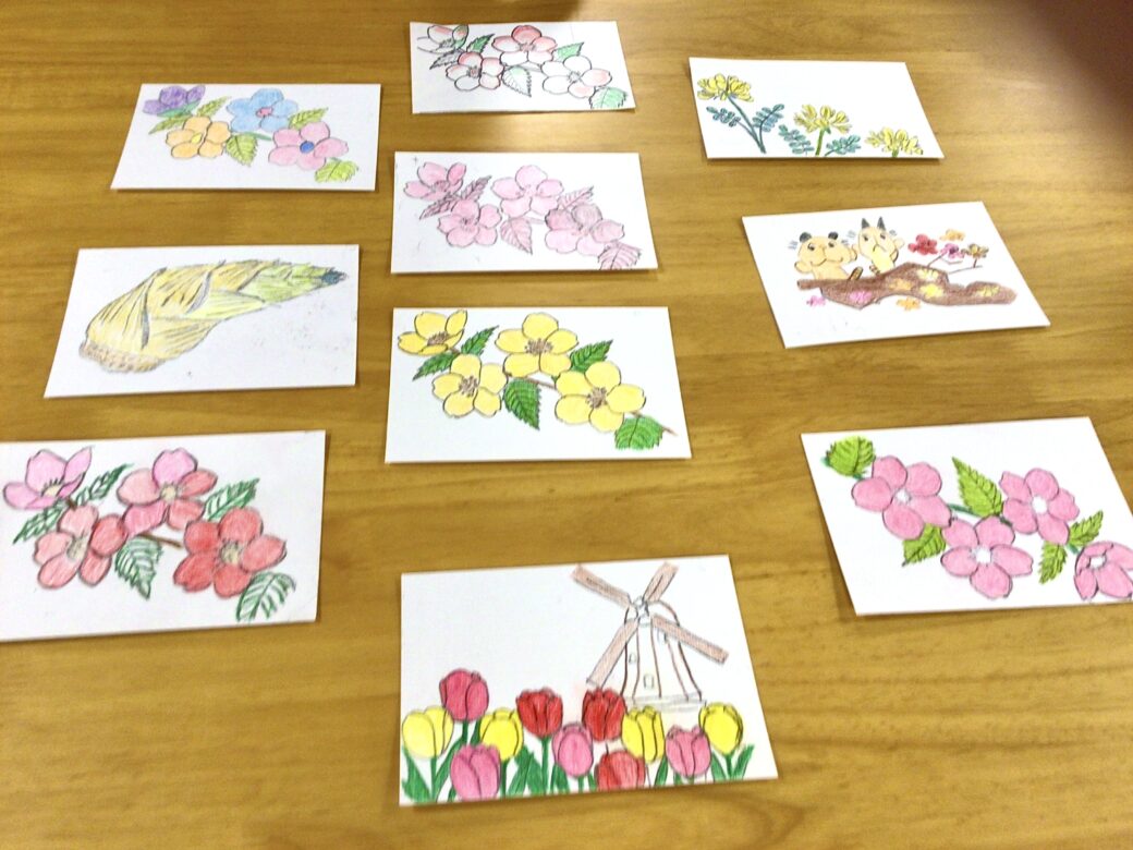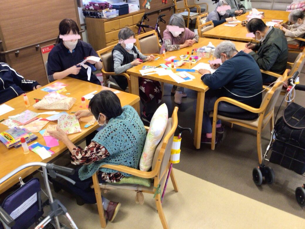 前半は春をモチーフとした作品や敷地内に咲いたお花を、後半は外食レクやおやつ作り、制作活動やゲームの様子の写真を掲載させて頂きます。